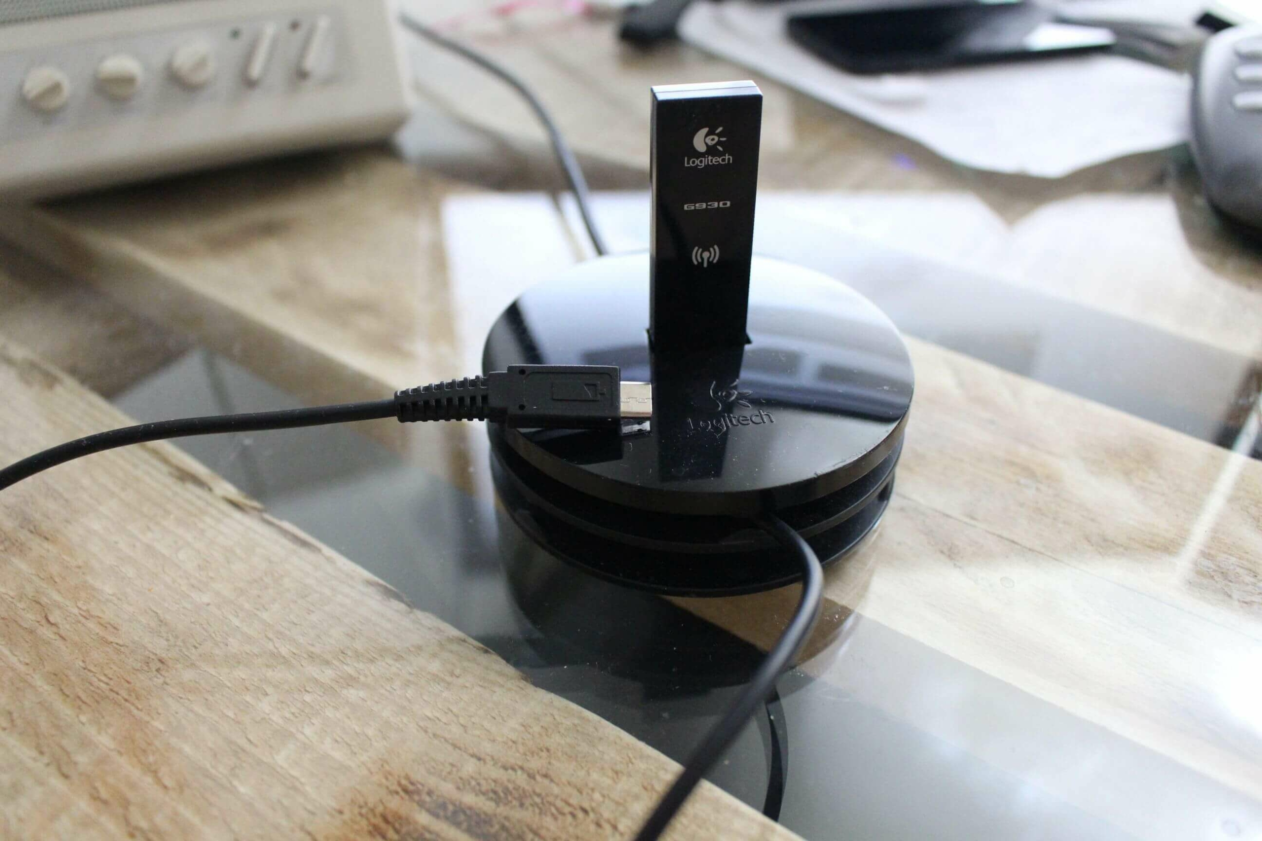 Der Akku des G930 soll laut Herstellerangaben rund 10 Stunden halten. Meine Praxiserfahrung kann das weitestgehend bestätigen. Das Laden des Headsets kann im laufenden Betrieb erfolgen. Durch das mitgelieferte USB-Hub, welches über ein USB Kabel verfügt, ist man sofort im Besitz eines ausreichend langen Kabels , mit dem das Headset geladen werden kann. Der Ladevorgang dauert im Betrieb rund 2-3 Stunden. Danach zeigt die Logitech-Software eine Laufzeit von 9 Stunden an, die oft überschritten werden kann. Die „Voll geladen“ Anzeige der Software war bei mir oft fehlerhaft und kam bereits nach einer Stunde Ladezeit, während das Headset mit einer kleinen Lampe noch den „wird geladen“ Status anzeigte. Ich würde empfehlen eher auf das Lämpchen am Headset zu achten, dass bei einem vollen Stand des Akkus dauerhaft leuchtet anstatt zu blinken, anstatt auf die Anzeige in der Software zu achten.